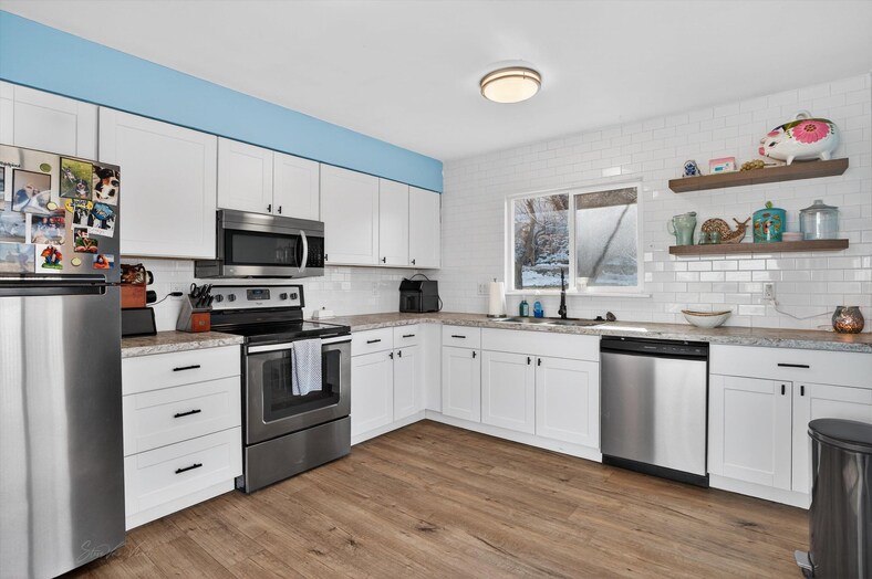 Tucked away at the end of the street on the west bench, this beautifully updated home offers privacy, comfort, and unforgettable mountain views. Near BLM ground, the setting feels peaceful and secluded. Inside, the home has been updated, featuring a newer kitchen and updated bathrooms. Large new windows fill the home with natural light while framing the stunning views. With three bedrooms, one and a half bathrooms, and two spacious living areas, this home is perfect for entertaining and relaxing! Major updates include a new roof in 2021, new vinyl windows (2024), newer furnace, newer central air conditioning, and durable composite wraparound decking! Step outside to enjoy the fenced yard, RV Parking and take in unobstructed mountain views! Schedule your showing today!