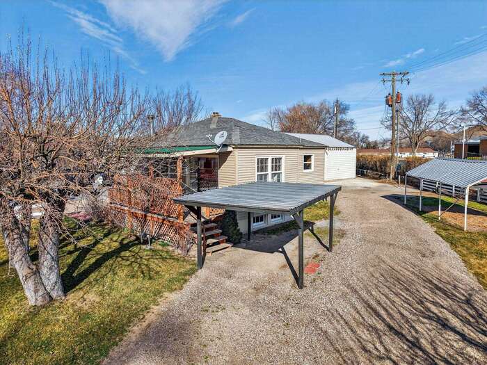 Come see this super clean property with a large shop, conveniently located near Idaho State University! This inviting home is filled with natural light and features hardwood floors, fresh paint, and new carpet. The updated kitchen showcases alder cabinets and solid surface countertops. Enjoy year-round comfort with gas heat and central A/C, plus relax on the covered front porch. The impressive 24x40 shop (960 sq ft) provides ample space for projects, hobbies, or storage. The property also includes two covered parking spaces, a wrap-around driveway, a cement pad for RV parking, a shed, apple trees and a sprinkler system, perfect for easy maintenance and outdoor enjoyment. You won't want to miss this charming, well-maintained property!
