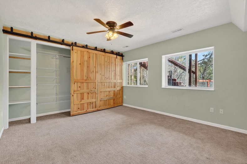 Welcome to your dream retreat in the desirable Johnny Creek area on Pocatello's scenic south side. Just minutes from golf, hiking, and biking, this 5-bedroom, 2.5-bath home sits on nearly one acre and offers comfort, efficiency, and self-sufficiency. Built with premium ICF block construction, it provides outstanding durability, insulation, and energy efficiency. Geothermal heating and cooling, plus a passive solar wall between the sunroom and living room, help lower utility costs year-round. The attached sunroom offers abundant natural light, while the connected greenhouse with water access supports year-round growing. Outside, enjoy a large fenced yard and enclosed garden area with 4 fruit trees, raspberries, raised beds, and drip irrigation to each tree.
