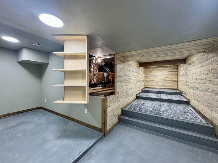 Stunning, fully updated home loaded with upgrades! Enjoy a brand-new redwood deck with solar lighting, enhanced curb appeal w/ evolved stone accents & new garage flashing over the heated garage, plus an exterior security system. The beautifully remodeled basement features a dedicated theater room with surround sound wiring and a reinforced media wall—perfect for movie nights—along with wet bar plumbing, full bath, large pantry/storage, and blue-stained pine tongue-and-groove finishes. All new basement wiring and plumbing, reinforced basement stairs, epoxy-coated concrete flooring, and a new high-capacity sump pump add peace of mind. Flexible floor plan offers two spacious family rooms, three bedrooms, and a large den with closet. Relax in the luxurious primary suite with dual shower heads and a jetted tub with timer. Step outside to a fully fenced backyard with a covered side patio and 20-ft carport—ideal for entertaining!
