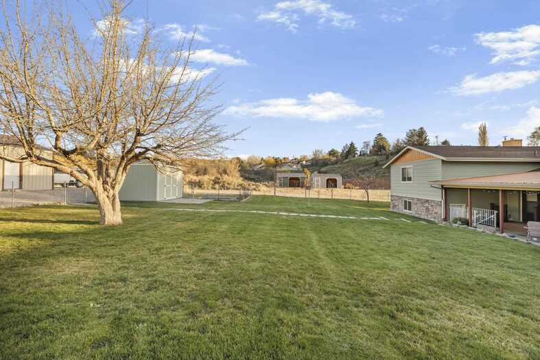 Experience the rare luxury of a country estate situated right in town, featuring nearly three acres of fenced land across two separate parcels. The 2,600-square-foot interior has been meticulously refreshed, boasting an updated kitchen and modern finishes throughout all four bedrooms and three bathrooms. The primary suite serves as a sophisticated retreat, complete with a spacious walk-in closet and a full, newly updated ensuite. A functional walk-out basement leads seamlessly to the outdoors, where a serene creek runs through the property, creating a tranquil backdrop for everyday life. The 24x30 heated shop with electricity offers ample space for year-round projects or specialized storage. With plenty of room to bring your horses, this property perfectly balances rural freedom with city convenience. It is a unique opportunity to enjoy a private sanctuary within minutes of local amenities.