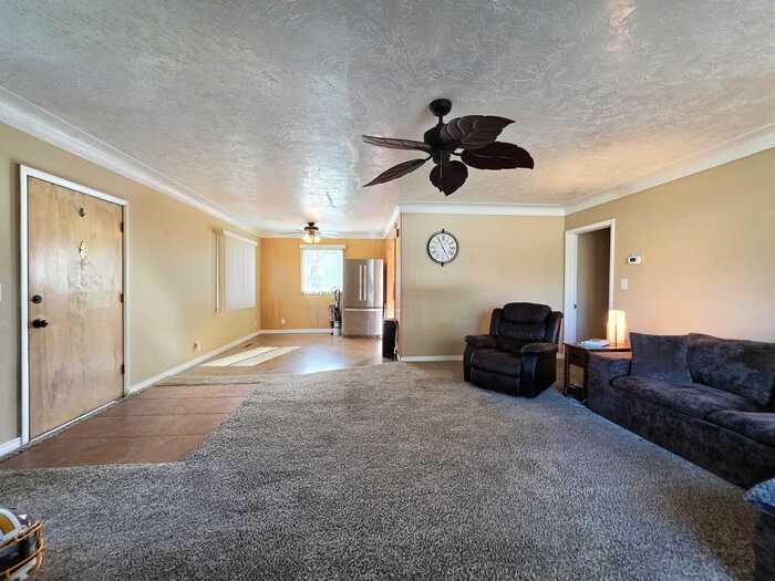 This home has everything on your list! Everyone gets their own space with four bedrooms, two bathrooms, a large bright living room, and a cozy family room in the basement! Yes, there's even room for your dining table! Need parking space too? The two car garage and large corner lot provide parking for every car and toy you own! With an efficient gas furnace and central A/C you'll pay less for year-round comfort. The easy clean vinyl windows along with the custom blinds were updated in 2023, and the exterior stucco was redone in 2024. Seller is also in the process of installing new kitchen counter tops. Basement family room could be used for a 5th bedroom with walk-in closet. Yard is fenced and has an automatic sprinkler system. Convenient - walkable location. HOME QUALIFIES FOR 0% DOWN RURAL DEVELOPMENT FINANCING! Call your favorite agent and schedule a tour today!