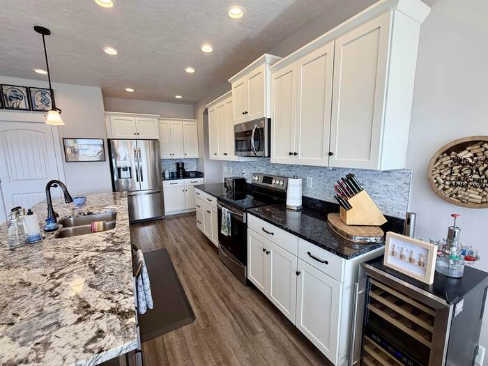 This is an incredible home recently built in 2018. This home has a full lawn and sprinkler system as well as a full vinyl fence. There is an RV pad as well as an incredibly spacious 3 car garage which includes a closet for the water heater and a radon mitigation system. The interior features an open floor plan with well kept flooring and granite countertops. The laundry room can be accessed from the hallway by the garage and has an additional access through the master closet for ease of access and functionality. There are 3 bedrooms and an additional office room that could also function as a bedroom. Above all this, is the incredible views that this home offers. The covered patio in the back with additional lighting puts you in perfect position to enjoy views of the town of Pocatello from your backyard. The fire pit and BBQ grill in the backyard are included and are individually fed with natural gas so there is no need for propane. Don't miss your chance to see this home now! OPEN HOUSE THIS SATURDAY APRIL 18th FROM 10-12