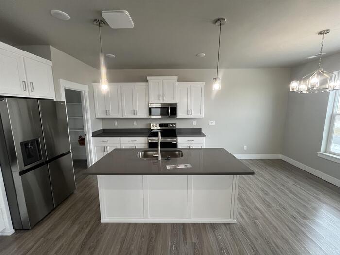 Don't miss this spacious and stylish 4-bedroom, 2.5-bath townhome designed for modern living. The open-concept main level offers a seamless flow between the kitchen, dining, and living areas—perfect for both everyday life and entertaining. The kitchen is thoughtfully designed with quartz countertops, abundant cabinetry, and plenty of workspace. Upstairs, the private primary suite is a true retreat, featuring a luxurious en-suite bath with **double sinks**, a **separate tiled soaking tub and walk-in shower**, and a **private water closet**. Completing the suite is a **large walk-in closet**, providing exceptional storage and functionality. Three additional generously sized bedrooms and a full bath offer flexibility for family, guests, or a home office. Additional highlights include a **2-car garage** and modern finishes throughout. Located in an exciting new development with the future **Chubbuck City Park** just steps away, this home offers upcoming green space, recreation, and a strong sense of community. A perfect blend of comfort, convenience, and contemporary design.