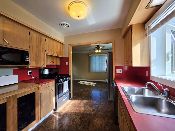 This home has everything on your list! Everyone gets their own space with four bedrooms, two bathrooms, a large bright living room, and a cozy family room in the basement! Yes, there's even room for your dining table! Need parking space too? The two car garage and large corner lot provide parking for every car and toy you own! With an efficient gas furnace and central A/C you'll pay less for year-round comfort. The easy clean vinyl windows along with the custom blinds were updated in 2023, and the exterior stucco was redone in 2024. Seller is also in the process of installing new kitchen counter tops. Basement family room could be used for a 5th bedroom with walk-in closet. Yard is fenced and has an automatic sprinkler system. Convenient - walkable location. HOME QUALIFIES FOR 0% DOWN RURAL DEVELOPMENT FINANCING! Call your favorite agent and schedule a tour today!