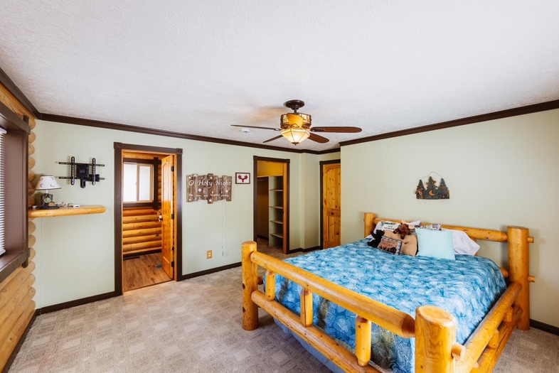 This beautiful log home sits on a spacious one-acre lot and offers 5 bedrooms, and 2.5 bathrooms, The master bedroom, complete with its own bathroom, is conveniently located on the main floor. The covered porch provides a perfect place for gathering with family and enjoying some relaxation time. Additionally, there is a fire pit where you can sit and unwind. If you appreciate privacy and the great outdoors, this home is ideal for you. Located just a short drive away is the Pebble Creek Ski Area, Don't miss out on the opportunity to see this remarkable home - call now to schedule your private showing.
