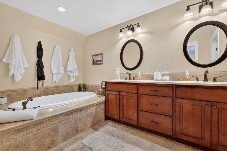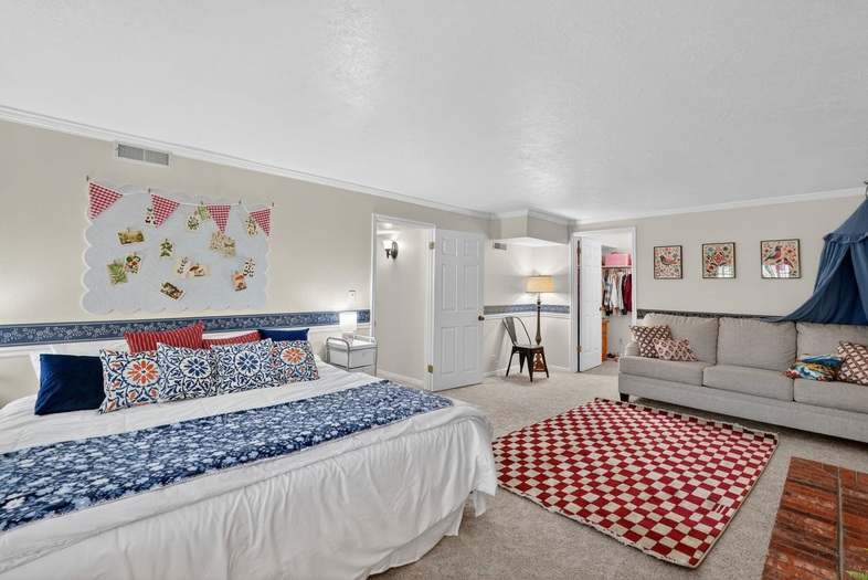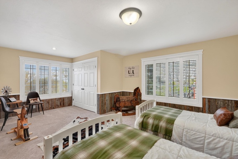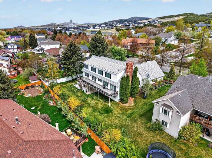 This stunning 2-story home in the Highland area offers nearly 6,000 square feet of exquisite living space with 5 bedrooms and 4 bathrooms. The main floor features formal living and dining rooms, a spacious office with built-ins, a gourmet kitchen, and a cozy family room with a fireplace. A large mudroom, laundry, and full bath add convenience. Upstairs, the luxurious master suite includes a spa-like bathroom with a soaker tub, dual sinks, and two walk-in closets. The walk-out basement has been converted to a short term rental with huge family room and kitchen, two bedrooms, a bath, and abundant storage. With new windows, plantation shutters, wood floors, crown molding, and custom cabinetry throughout, this home combines timeless elegance with modern functionality. Close to public school bus stops, Gate City Elementary, Highland High School, Wellness Complex, Highland Golf Course, and walking distance from trail heads with miles and miles of trails.
